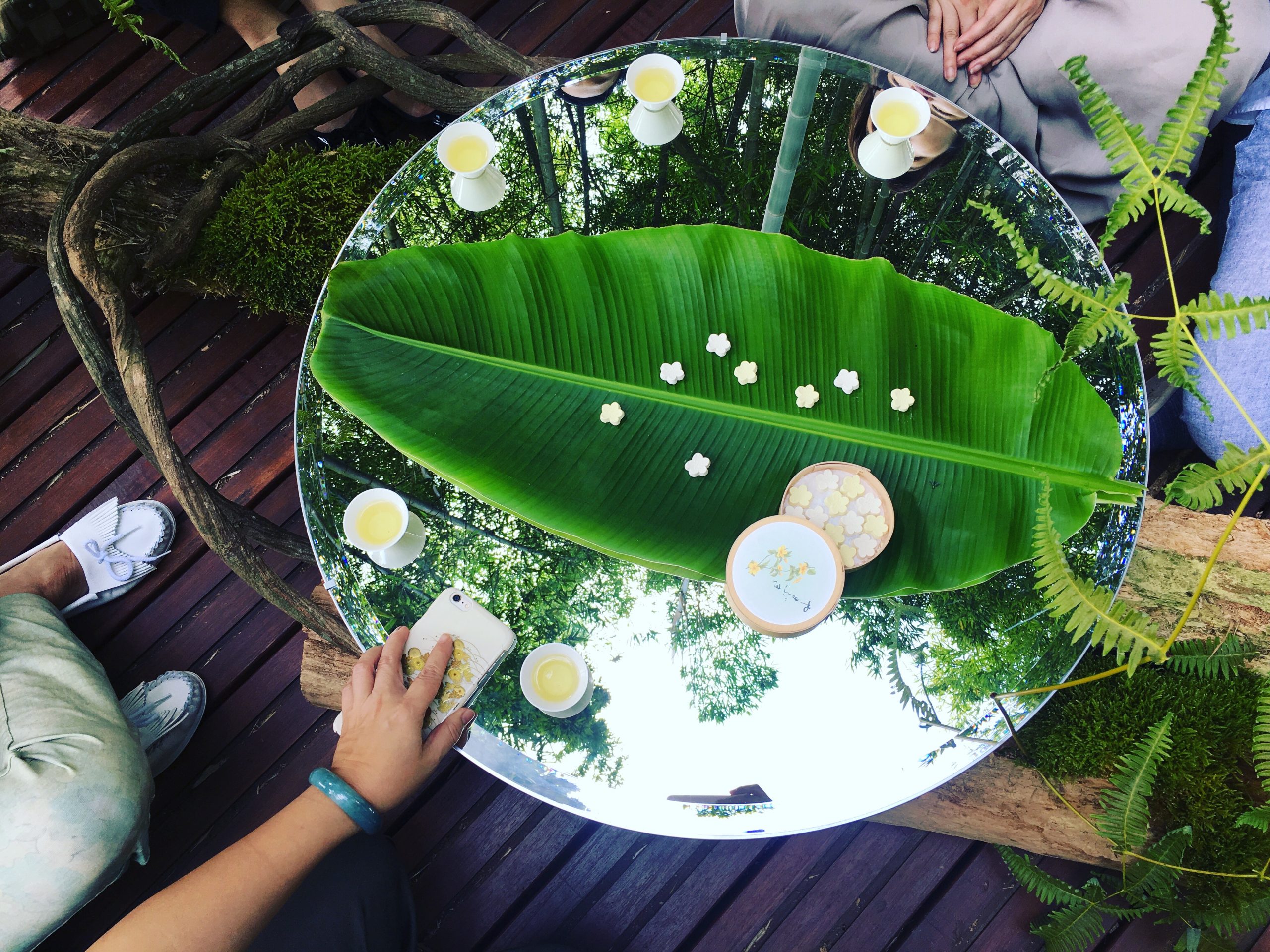 首次認識阿倫茶師是在大地茶席,不像我們一般看到的傳統設置,地點選在竹林,茶席竟然是面鏡子,將天地、竹林盡收其中。茶師還讓我們到樹林裡尋者自己喜歡的葉子、花兒、木頭,自行佈置茶席,取之於自然、徜徉於自然,真是前所未有的體驗。每當自己在家裡泡茶,都彷彿回到了阿里山的綿綿懷抱之中。